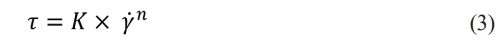 Model Power Law: For pseudoplastic or dilatant liquids, the viscosity changes with the shear rate [34].