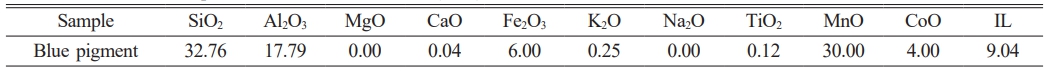 The dilution factors are then used, in combination with the ratios of MnO, Fe2O3 and CoO, to determine the dilution corrected ratios. These corrected ratios should better represent the characteristics of cobalt-blue pigment, allowing for a more representative comparison. The calculation methods are as shown in formula (3) and (4), and the thus results are presented in Table 4.