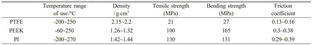 At present, the selection of cage materials for full-ceramic ball bearings is mainly concentrated in the field of engineering plastics, including polytetrafluoroethylene (PTFE), polyetheretherketone (PEEK), and polyimide (PI). The performance comparisons of the three types of cage materials are shown in Table 3.