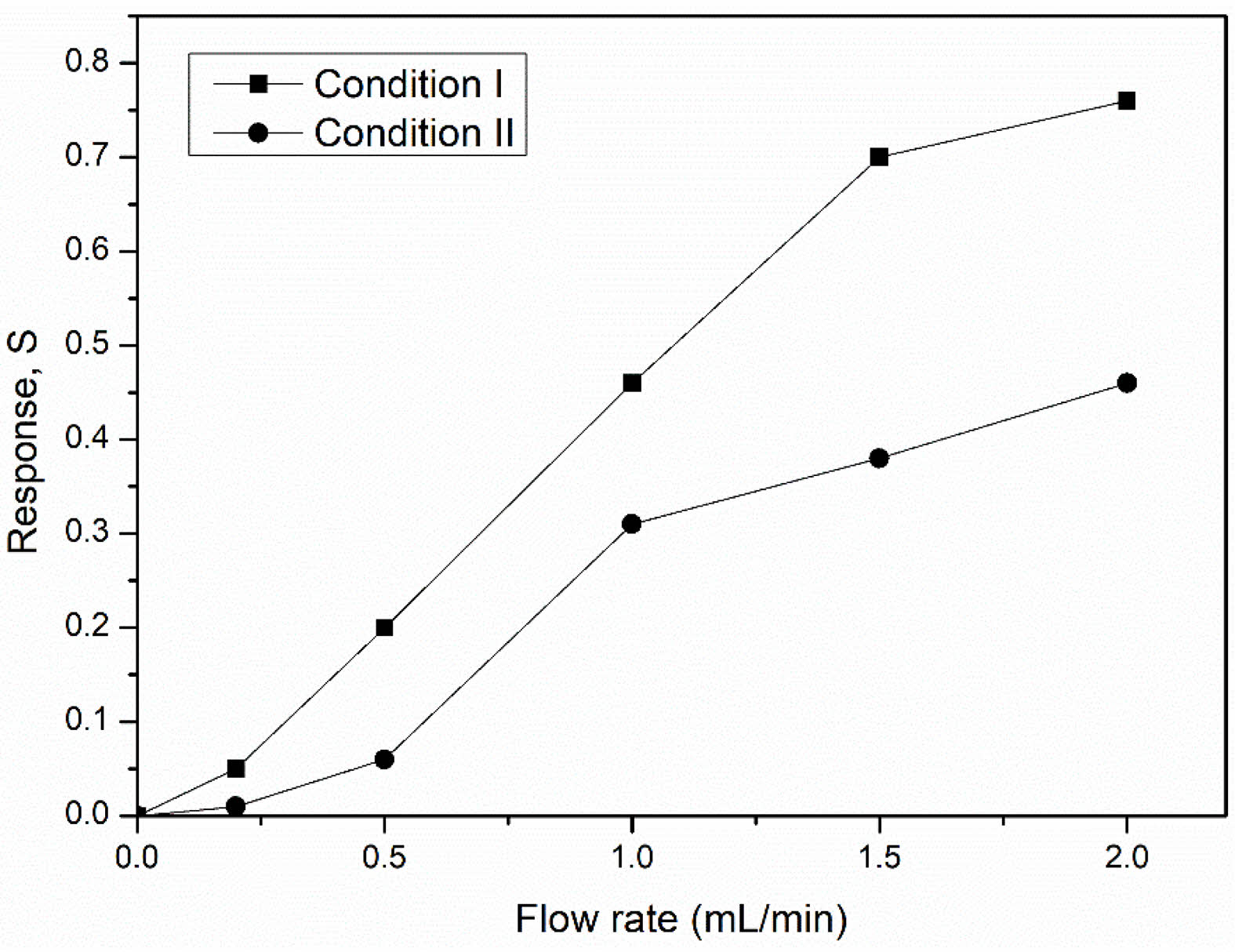 Fig. 11 Responses at various LPG flow rates of NiFe2O4 ceramic sensors sintered under different conditions. |