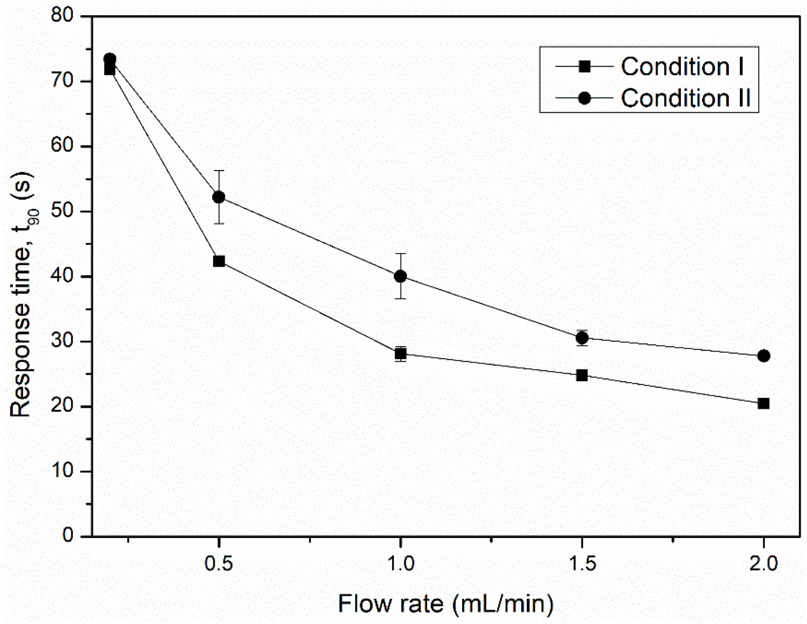 Fig. 12 Response time of NiFe2O4 ceramic sensors after exposure to various LPG flow rates. |