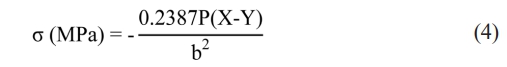 where σ is biaxial flexural strength (or the maximum tensile stress), Pis the load at failure, and bis the specimen thickness at the fracture origin. X and Y were determined using the following formulas: