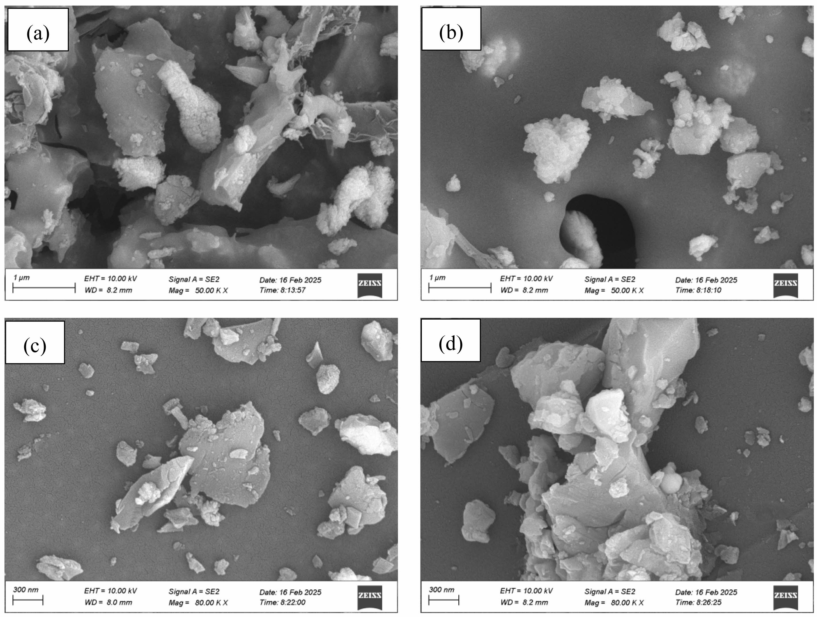 In addition to the intermediate phases discussed above, from the perspective of thermodynamic calculation, boride intermediate phases such as ZrB4 and SiB6 may also theoretically exist in this reaction system. However, the presence of these phases was not detected in this experiment either, and the core reasons can be attributed to two aspects: first, in terms of thermodynamic stability, the formation free energy of ZrB4 and SiB6 is higher than that of ZrB2 and SiC. According to the principle of minimum energy, the reaction tends to generate ZrB2 and SiC, which have lower energy and higher stability; second, from the perspective of reaction kinetics, the parameters of the carbothermal reduction process set in this study (calcination temperature of 1600 °C and holding time of 1 h) are more suitable for the formation process of ZrB2 and SiC. In contrast, the formation of ZrB4 and SiB6 requires higher temperatures (usually exceeding 1800 °C) or longer holding times, which cannot be met by the existing experimental conditions. Therefore, such boride intermediate phases were not detected.