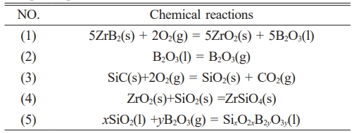 Table 1 Principal chemical reactions governing SiC-ZrB2 composite powders oxidation in air [25-28]. |