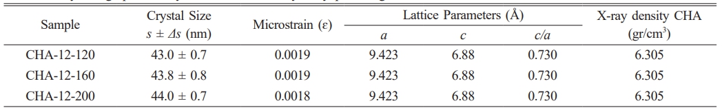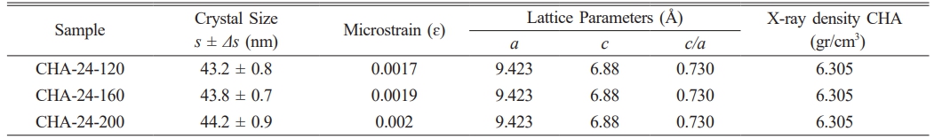 The X-ray diffraction (XRD) patterns of CHA samples aged for 12 hours are presented in Fig. 5a. Each peak in the diffraction pattern corresponds to the presence of a crystalline phase within the sample, with higher peak intensities indicating a higher concentration of the associated crystalline phase [3, 10, 37]. CHA-12-120 shows peaks at diffraction angles (2θ) of 31.77°, 32.19°, and 32.9° for the (112), (300), and (202) planes, respectively. CHA-12-160 has peaks at 31.76°, 32.18°, and 32.89°, while CHA-12-200 displays peaks at 31.77°, 32.19°, and 32.9° [2–4, 29].