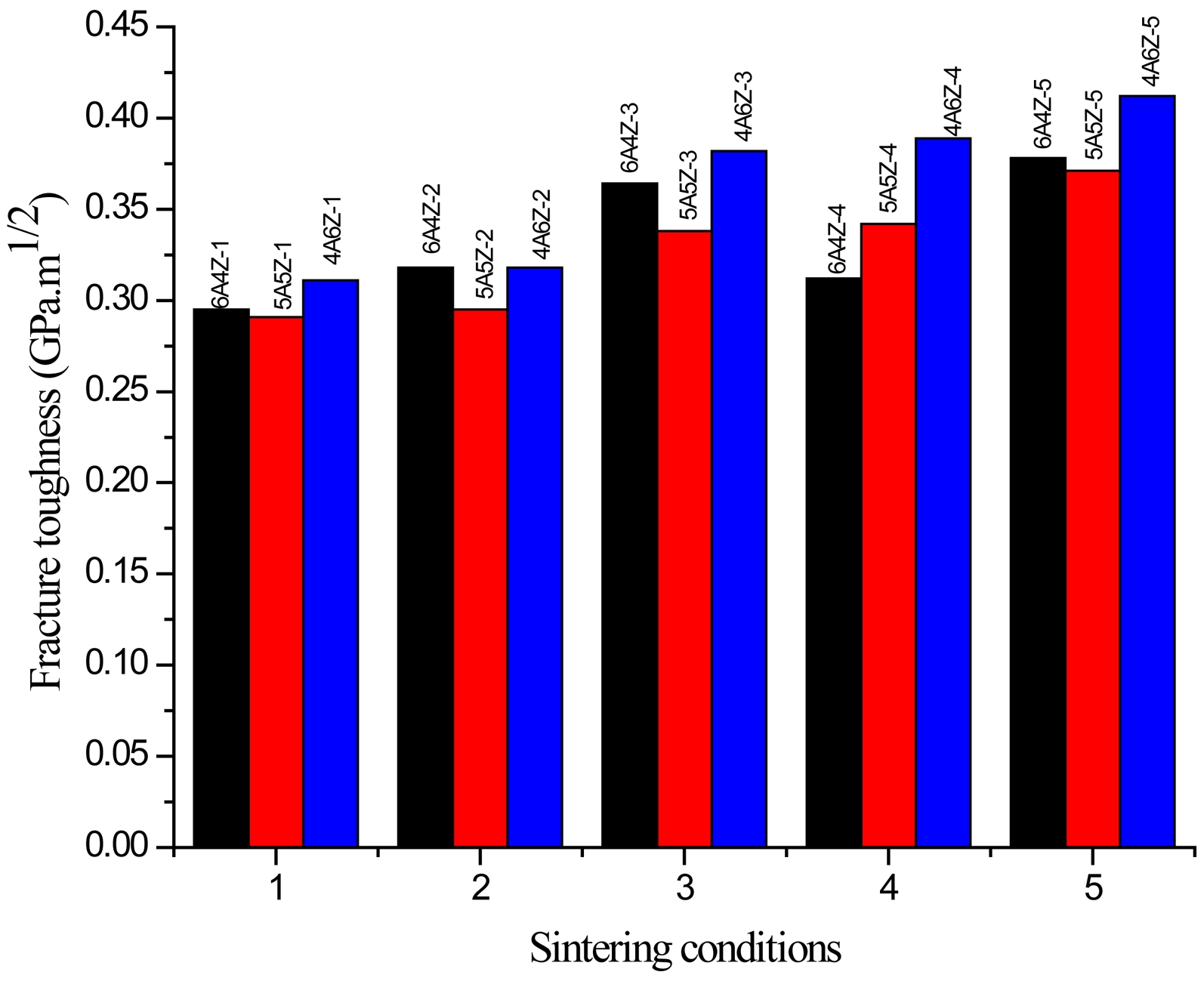 Fig. 6 The relationship between fracture toughness values of (100-x)AM-xZY (x = 40, 50, 60) composite ceramics. |