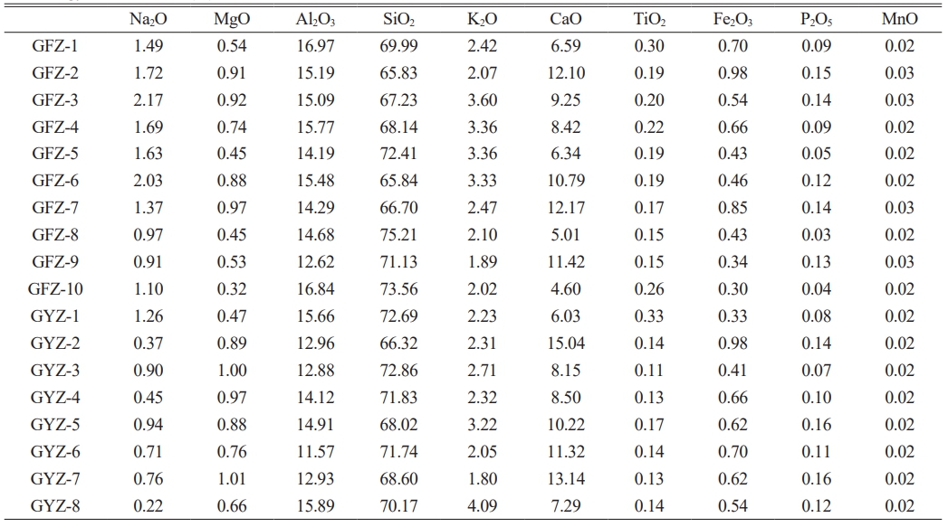Table 2 Composition of primary and secondary elements (%) in the glaze of white porcelain samples excavated from the Guifangzi and Gangyanzi kiln sites (%). |