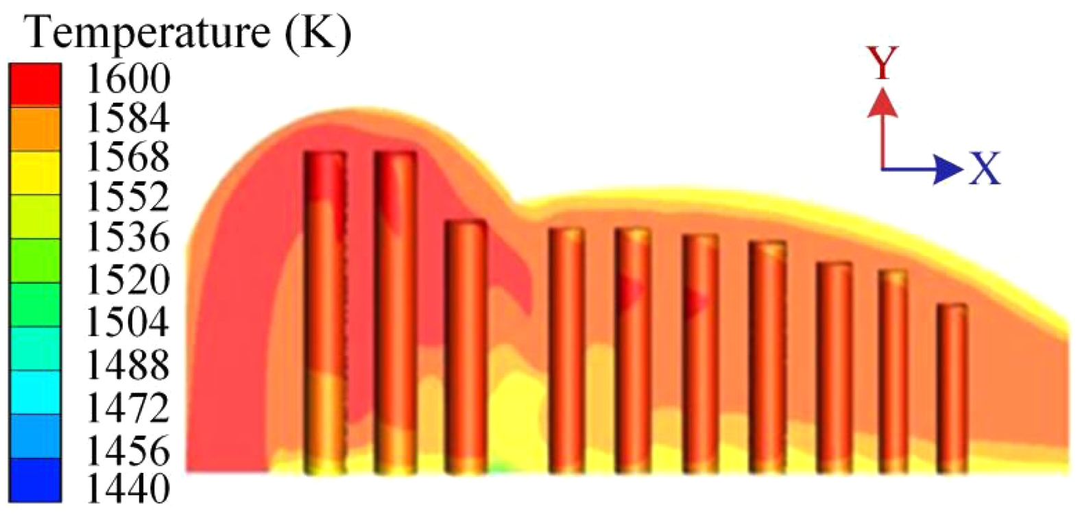Fig. 4 Temperature flow diagram of flue gas in the kiln. |