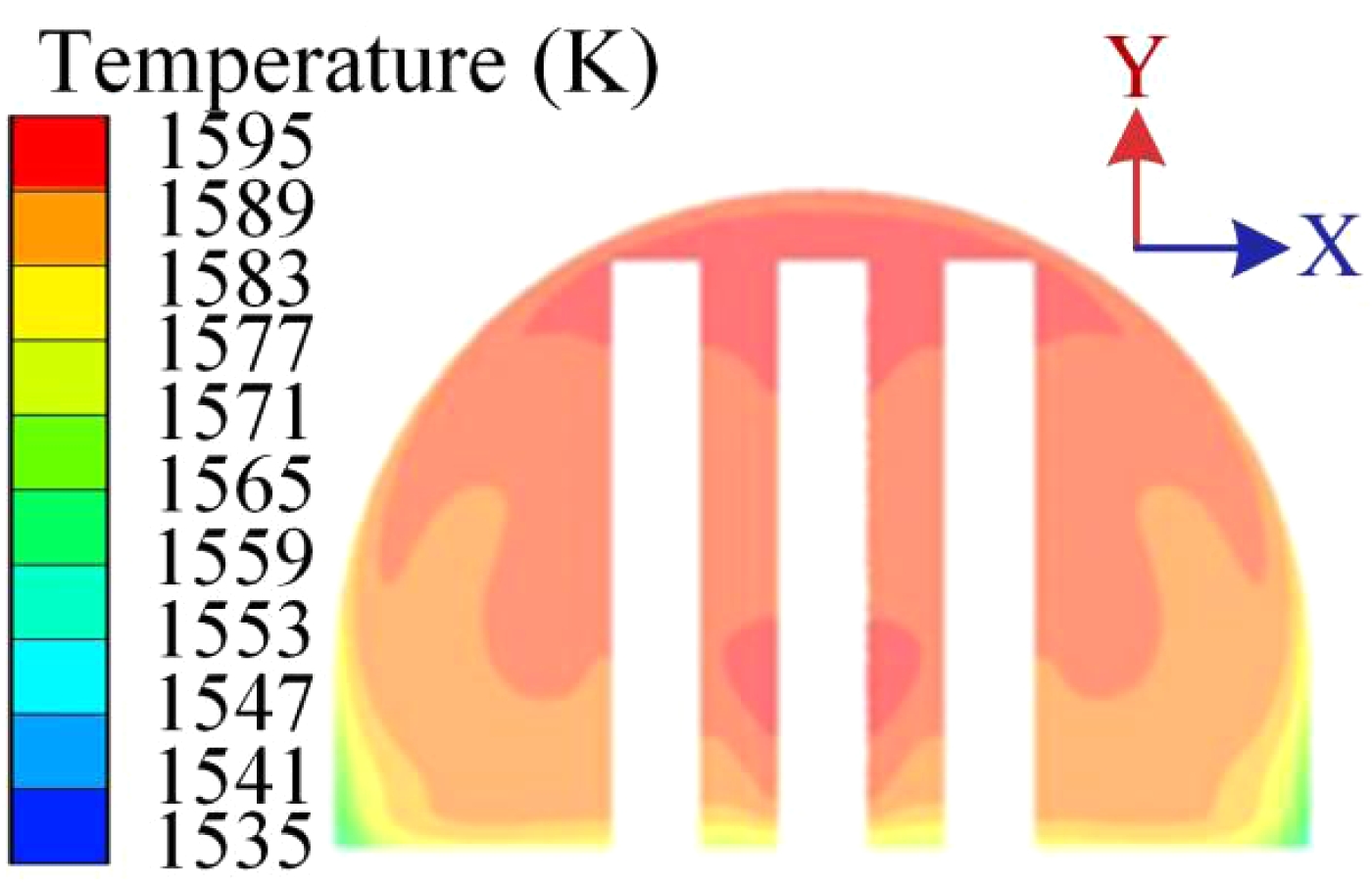Fig. 7 Temperature distribution diagram of waist section of calabash kiln. |