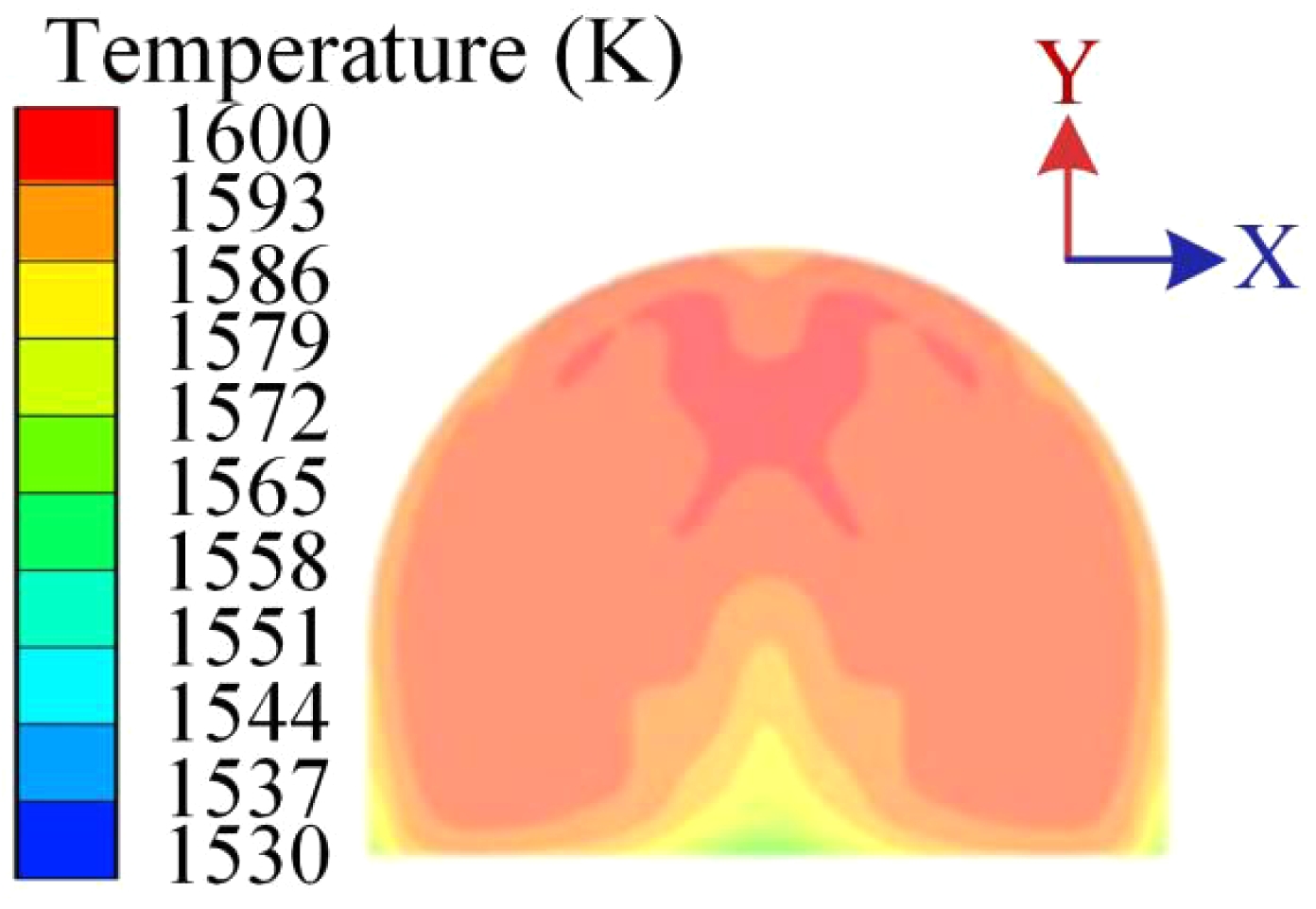 Fig. 6 Temperature distribution profile in the middle of the front chamber. |