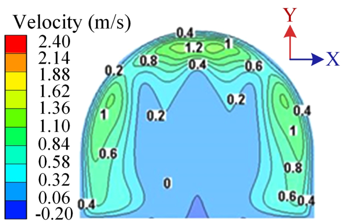 Fig. 11 Velocity distribution diagram of waist section of gourdshaped kiln. |