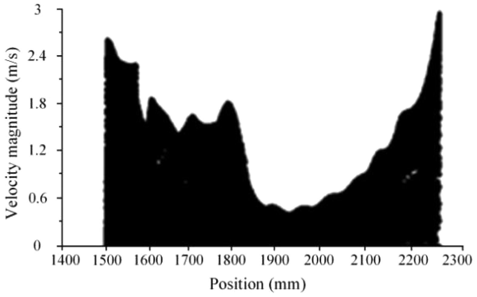 Fig. 10 Velocity distribution profile in the middle of the front chamber. |