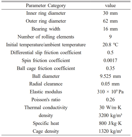 Table 1 Basic parameters of 6206 all full ceramic deep groove ball bearing simulation calculation. |