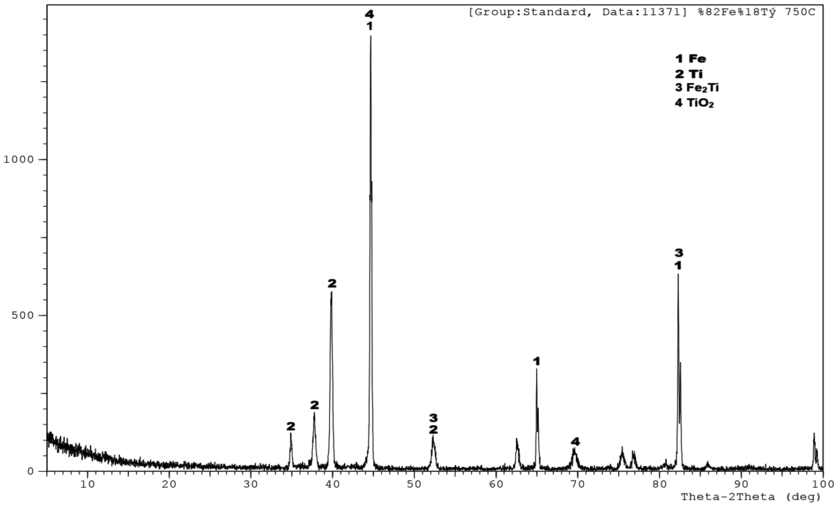 Fig. 5 XRD analysis of sample (%82Fe-%18Ti) sintered at 750 ºC. |