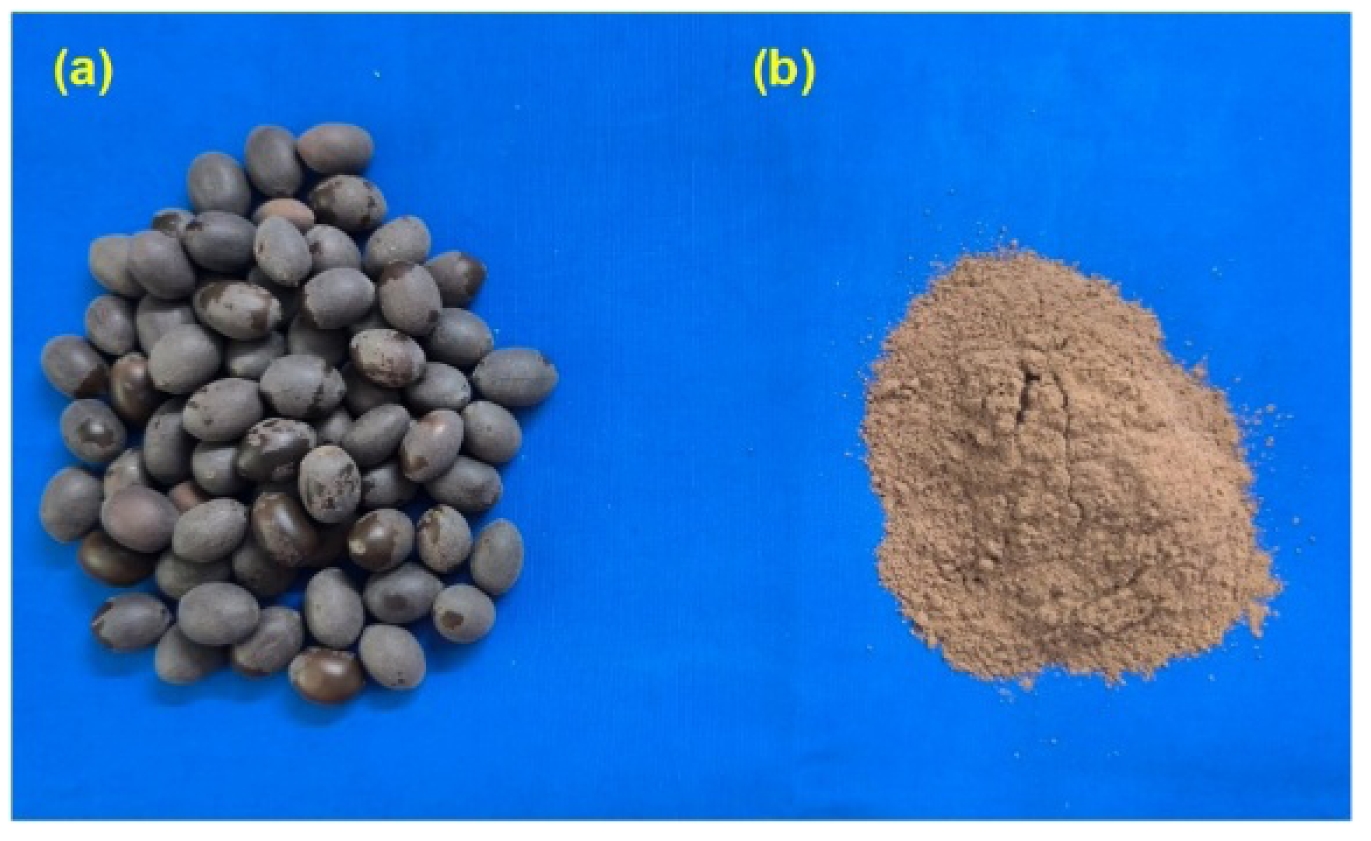 Lotus seed shells (Nelumbo nucifera) were manually separated from mature seeds, thoroughly rinsed with distilled water, and sun-dried for 2–3 days to remove surface moisture. Thereafter, the shells were oven-dried at 100 °C for 4 hours to achieve complete dehydration. The dried shells were then grounded using a high-speed grinder to produce a fine powder, which was passed through a 50-mesh stainless steel screen to ensure uniform particle size. The resulting Lotus Seed Shell Powder was stored in sealed zip-lock bags under dry conditions until further use. This biodegradable lignocellulosic filler was employed to improve the mechanical and interfacial properties of the composites [21]. Fig. 2 shows the lotus seed and the seed shell powder.