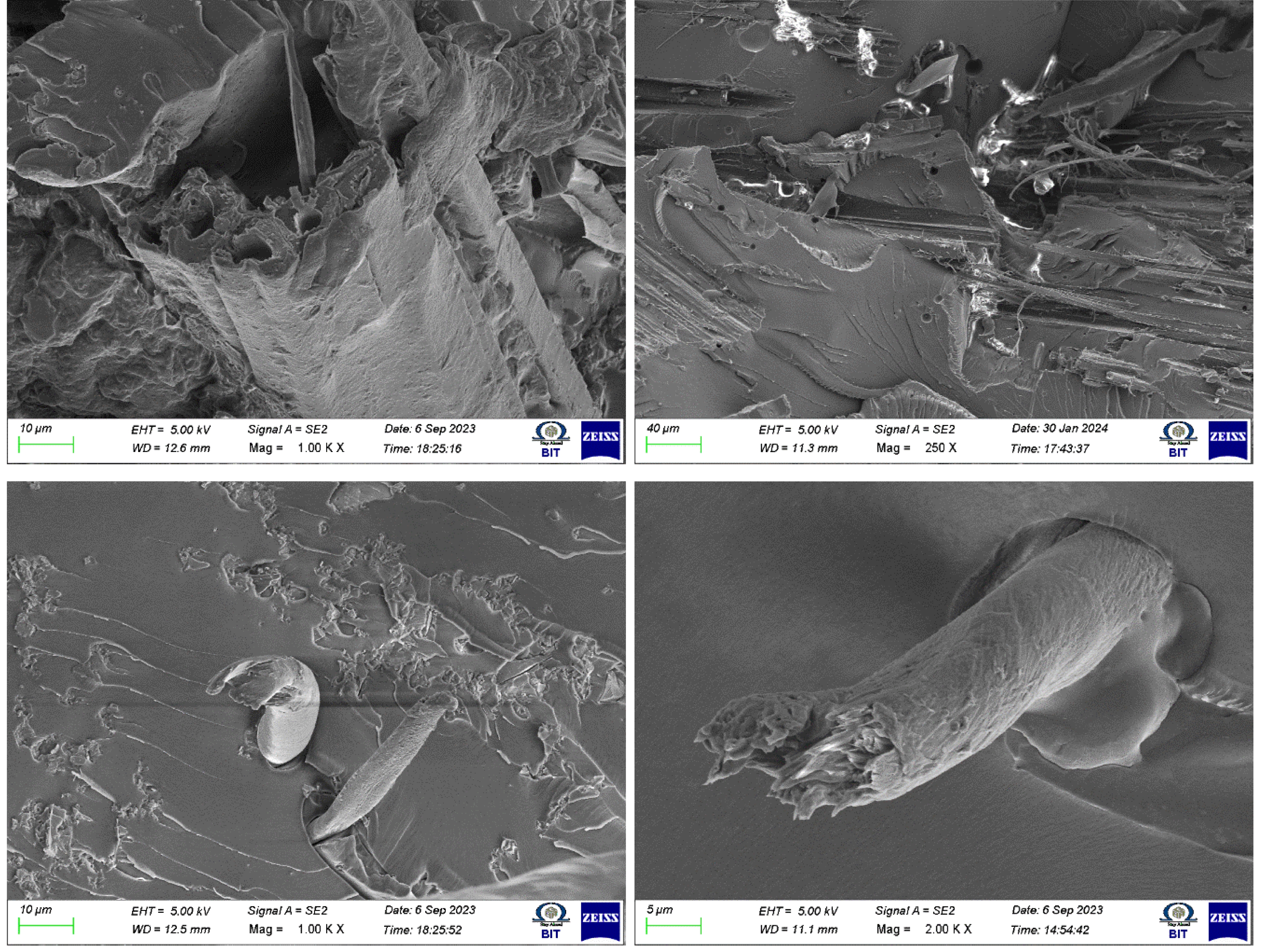 According to scanning electron microscopy (SEM) analysis, integrating natural fiber reinforcement into a matrix causes deformations and an uneven distribution and this reduces the mechanical properties of the composites. The hybridization of BFF and MF improved the properties of the matrix due to homogeneous distribution of the fibers.