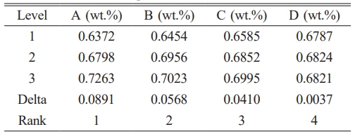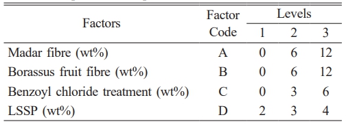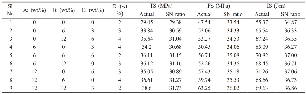 Table 2 Taguchi optimization of Borassus fruit/Madar composites utilizing the L9 orthogonal array. |