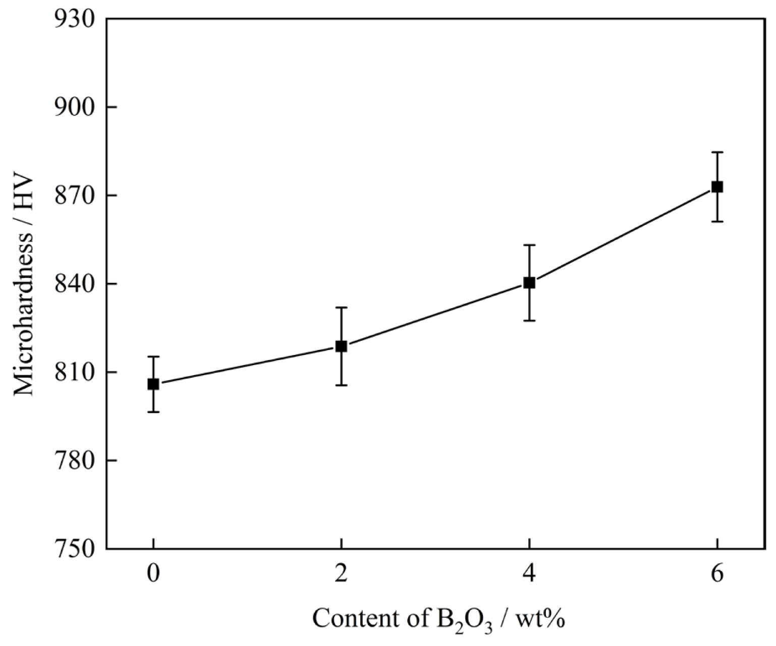 Fig. 8 Microhardness of glass-ceramic samples with different B2O3 contents. |