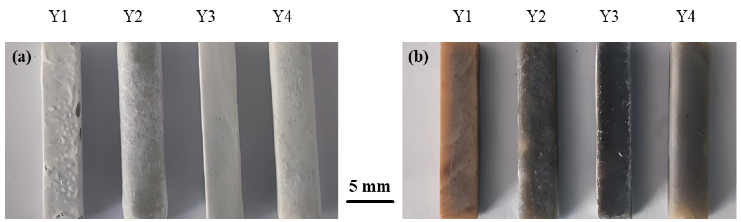 Fig. 10 shows the actual photographs of the glass-ceramic samples. As observed in Fig. 10, with increasing B2O3 content, the color of the glass-ceramics underwent a noticeable change, transitioning from light yellow to brownish green, and finally to a grayish-white tone.