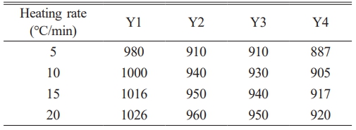 Where Tp is the peak temperature of the exothermic peak in the DSC curve (K); β is the heating rate of the DSC curve, ℃/min; R is the universal gas constant; E is the crystallization activation energy, kJ/mol; and ν is the frequency factor.