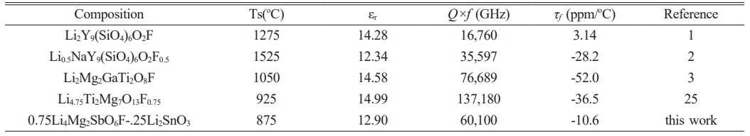 Table 2 Comparison of microwave dielectric properties of Li-based oxyfluorides ceramics. |