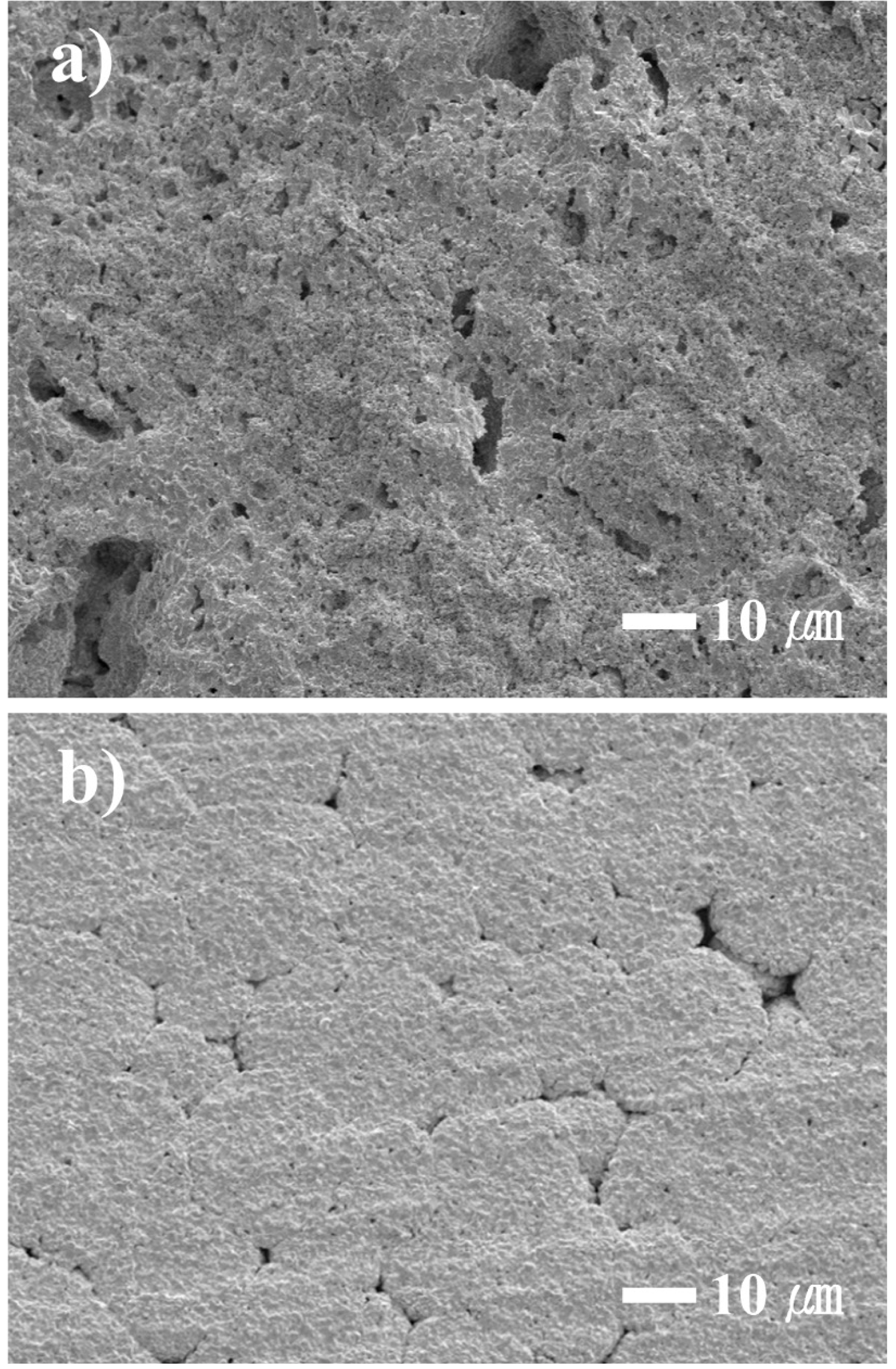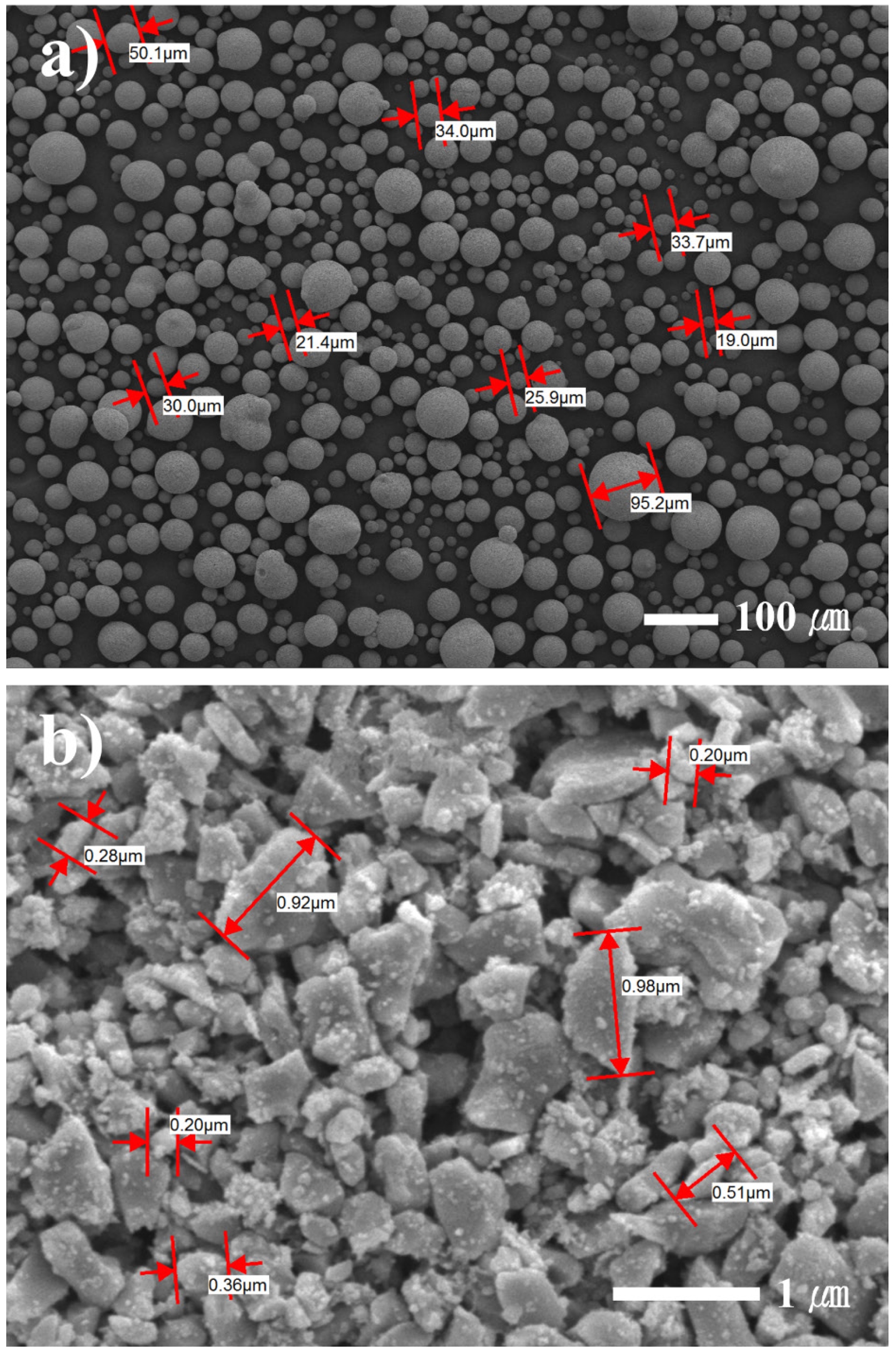 Fig. 1 SEM micrographs of black alumina granules (a) ×100 and (b) ×10,000. |