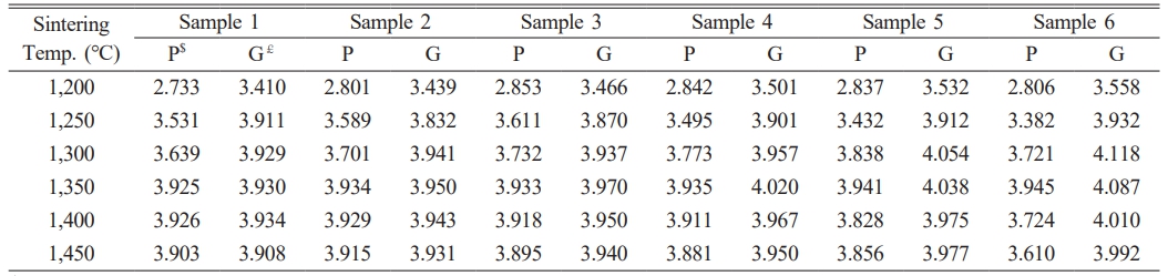 Table 3 Sintered Density of Each Samples at Different Sintering Temperature (Unit : g/cm3 ) |