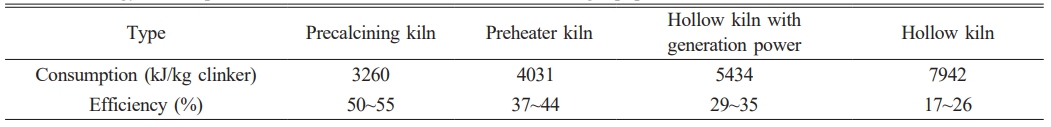 Table 1 Energy consumption level of different Portland cement calcining equipment. |