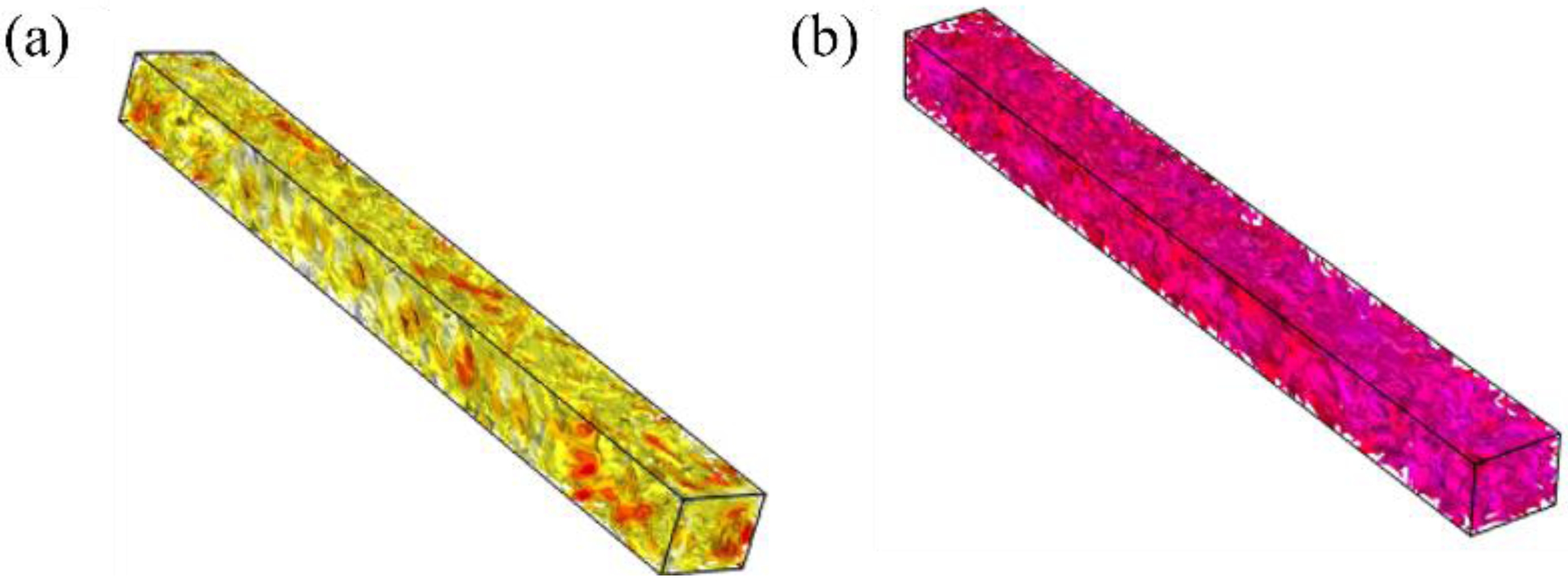 COMSOL was used to simulate the temperature distribution after holding at temperature for 2 h, during the 600 ℃ debinding process and 1250 ℃ sintering process respectively, and the results are shown in Fig. 1. The sample density was obtained from actual measurements (bulk density of 1.61 g/cm3, open porosity of 31.55 vol%), and other parameters were obtained by using the built-in material library of the software. The color in the figure represents the temperature, and the closer the color is to red, the higher the temperature. In both cases, the color distribution is uniform and the overall color is consistent, indicating that the sample temperature distribution in these conditions is rather well uniform, and therefore sintering conditions in each area of the sample are similar.