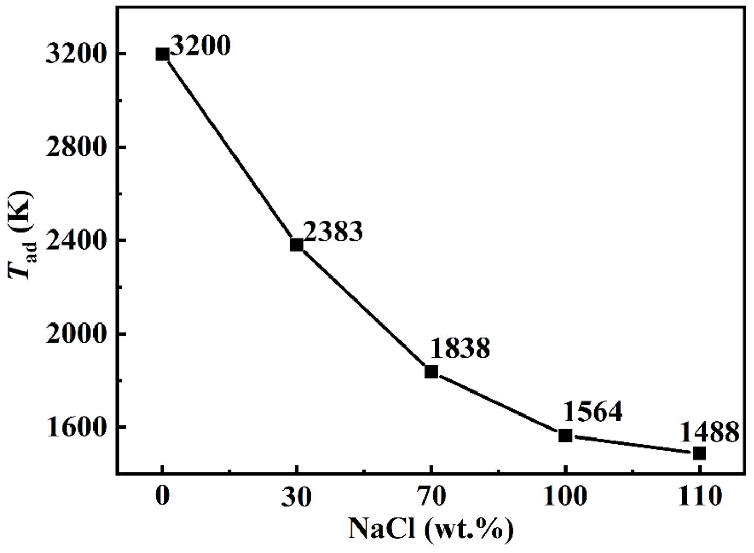 Fig. 2 The correlation between the Tad of the reaction system and the amount of NaCl. |