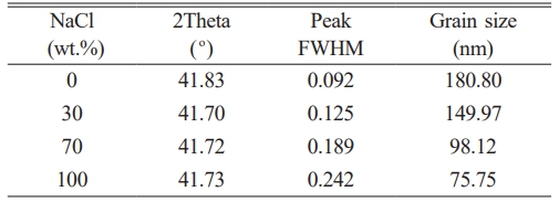 Table 3 Calculated grain sizes of TiC synthesized based on the (200) diffraction plane. |