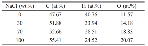 Table 4 The proportion of elemental content in TiC synthesized with different amounts of NaCl. |