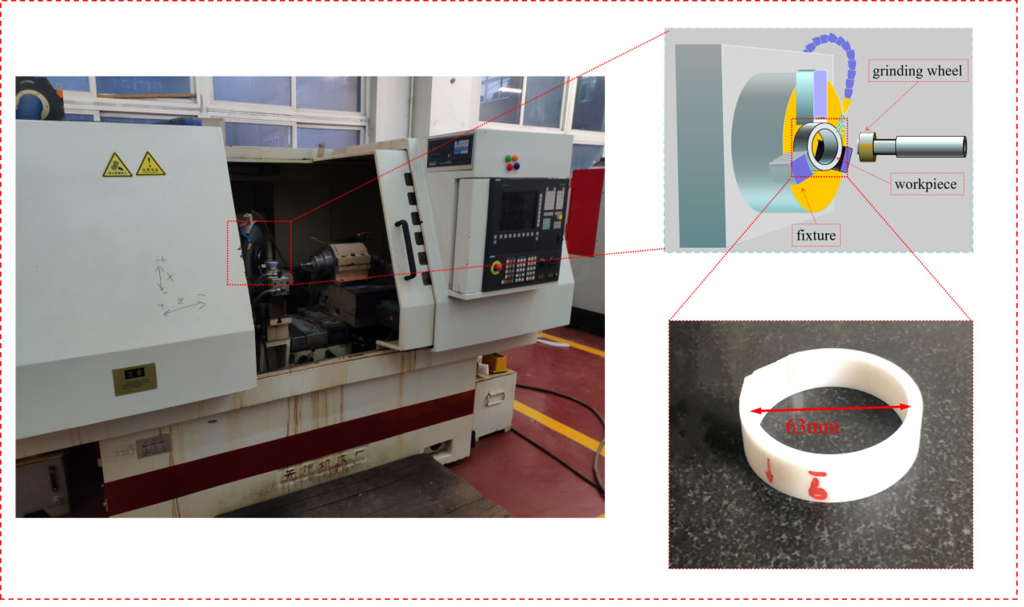 Although the processing efficiency of engineering ceramics has been improved to a certain extent by optimizing processing parameters and enhancing machine tool precision [1], ensuring surface quality while achieving high-efficiency machining remains a key focus of research [2-4]. In the manufacturing of ceramic bearings, centerless grinding has been widely applied in the external cylindrical processing of bearing rings, enabling mass production [5-7]. Nevertheless, achieving the efficient and precise internal cylindrical machining of ring workpieces remains a significant challenge.