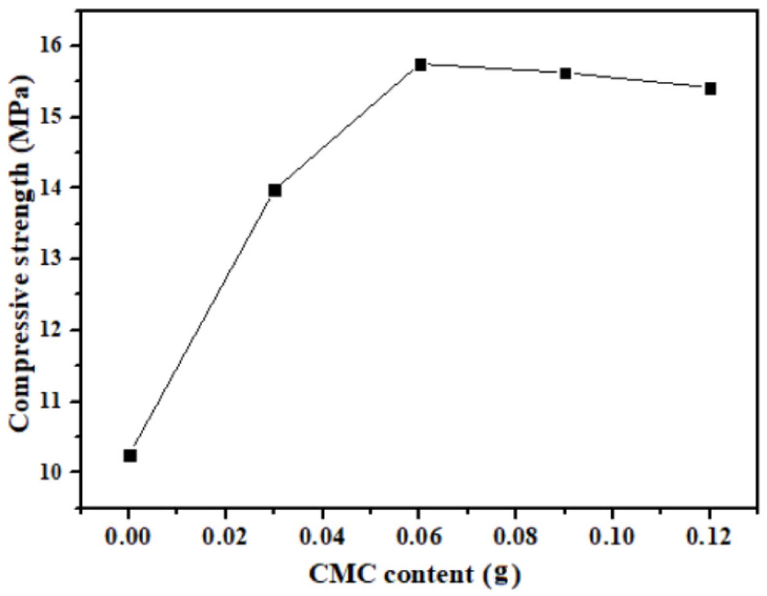 Fig. 2 Compressive strength of porous ceramics prepared from P1 with different CMC content. |