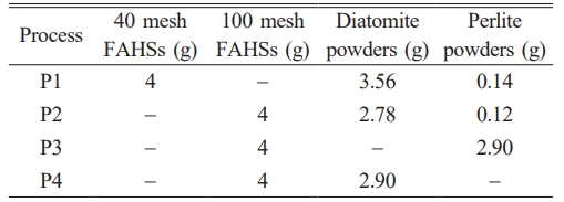 First, FAHSs, diatomite, expanded perlite powders, acrylamide, methylene bisacrylamide, dispersant (0.06g) and ammonium persulfate were added to the glass beaker filled with 15 mL sol. The gelcasting process was described elsewhere [15]. Next, 120 μL tetramethylethylenediamine was added into the well-stirred mixture, and then it was casted into a polytetrafluoroethylene mold for curing. The cured green body was dried at 40 ℃ for 8 h. Finally, the dried green body was sintered at 1200 ℃ for 2 h to obtain porous ceramics. The slurry composition for preparing green bodies is shown in Table 1.